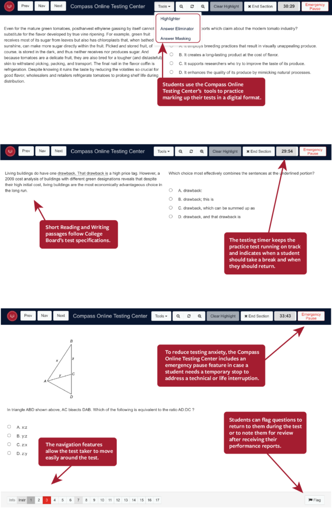 The digital psat and sat practice tests mimic the interface, question types, and test structure of college board’s exams (see details about adaptive testing below).